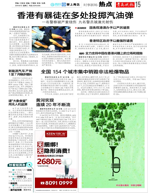 香港有暴徒在多处投掷汽油弹新能源汽车产销1至7月稳步增长建“大象食堂”用无人机监测黄河实现连续20年不断流全国154个城市集中销毁非法枪爆物品