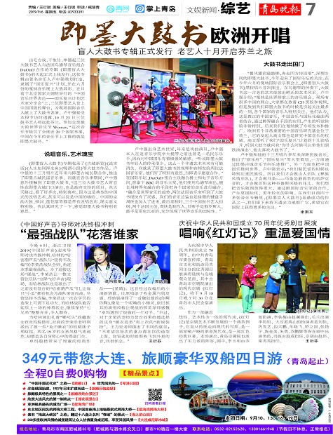由毛方成、于惟仕、单德起三位大鼓书艺人与法国乌德琴音乐组合DuOuD合作的专辑 《即墨盲人大鼓书》前天起正式上线发行,这张专辑由著名音乐人卢中强策划打造,隶属于“国乐复兴”计划,并在六月份的戛纳音乐展上大放异彩。在日前于北京国家大剧院举行的 “中国音乐世界表达——国乐复兴计划艺术家分享会”上,三位即墨艺人登上中国顶级的舞台,为现场国际音乐人献上了大鼓书表演。卢中强接受本报专访时透露,10月23日三位鼓书艺人将远赴芬兰,参加全球最大的世界音乐节Womax,“这次音乐节吸引了全球近20个国家参展,中国在今年的音乐节上主推的就是即墨大鼓书。 ”