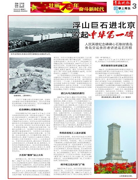 浮山巨石进北京立起中华第一碑