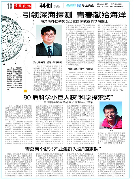 引领深海探测 青春献给海洋80后科学小巨人获“科学探索奖”青岛两个新兴产业集群入选“国家队”