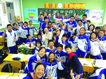 因为采访要给白晶晶和学生们拍照,班里一下炸开了锅,学生们开心地爬上桌子、摆出各种酷酷的姿势,要挤进相框。 “这就是我们班的孩子们,虽然调皮捣蛋的一大群,可是当你生气时,或许有人会递来一张纸条,上面有一个可爱的笑脸……”