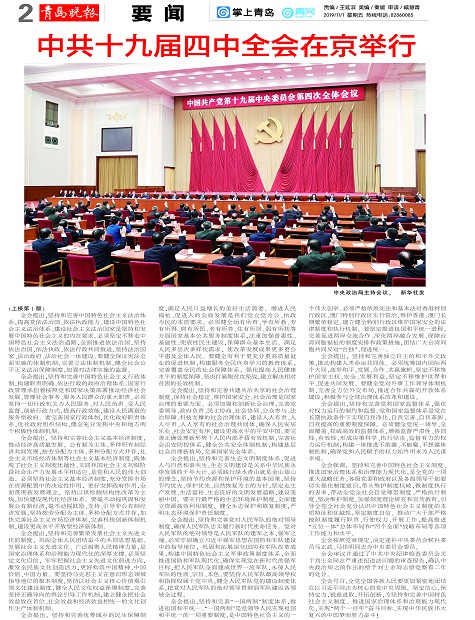 中共十九届四中全会在京举行