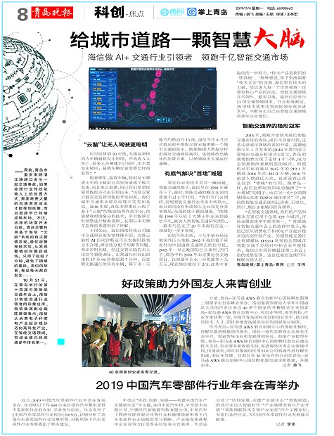 给城市道路一颗智慧大脑2019中国汽车零部件行业年会在青举办好政策助力外国友人来青创业