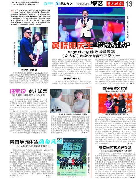 黄晓明庆生 新歌出炉任素汐岁末送喜异国学徒体验海南风情范伟诠释父女情青岛当代艺术展在即