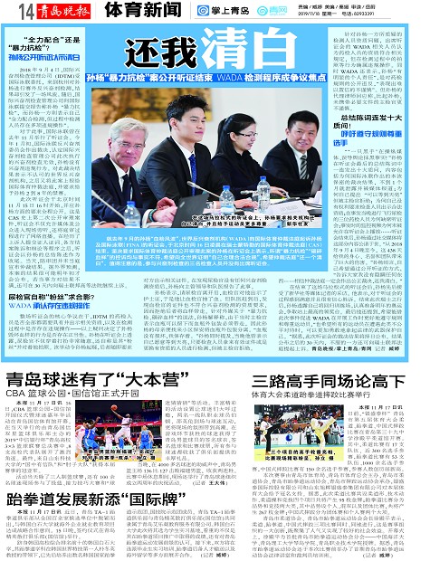 在结束了这场马拉松式的听证会后,孙杨先后接受了新华社等媒体记者的采访。他表示,对于听证会的过程感到满意并且很有信心胜诉。结束此次瑞士之行后,孙杨透露自己将回归训练场,认真准备明年的奥运会,争取站上最高的领奖台。最后他还提到,希望能借此次事件促进WADA在开展工作时更好地遵守规则和尊重运动员,“也希望所有的运动员在遭遇此类不公平对待时,可以更加勇敢地拿起法律的武器保护自己。 ”据悉,此次听证会的裁决结果将择日公布。结果公布之后的30天内,不服的一方还可向瑞士联邦法庭提起上诉。青岛晚报/掌上青岛/青网 记者 臧婷