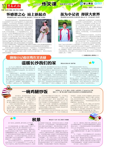 孙田钰,女,17岁,青岛一中高三·8班学生,于2019年6月获得第二十一届“语文报杯”全国中学生现场作文大赛国家级特等奖。