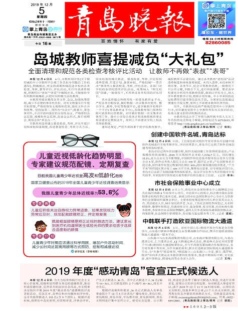 岛城教师喜提减负“大礼包”2019年度“感动青岛”官宣正式候选人创建中国软件名城,青岛达标市社会保险事业中心成立中韩联手打造欧亚国际物流大通道