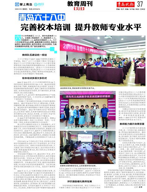 2018年11月,以“从教学现象反思教学效果,用实际行动提升教学质量”为主题召开学校教育教学工作会议,引导全体教师反思教学行为,组织各教研组汇总影响教学效益的现象,聚焦问题找方法,并逐步在教学过程中进行整改。2018年12月6日举行“把握高考脉搏,提高备考效益”的“高三教学论坛”,对高考新形势、全国卷特点、高考阅卷、复习备考的策略与思路提前进行规划。全员培训2019年3月举行了“不忘初心,牢记使命,争做四有好老师”师德师风建设教育月活动。2019年7月75名教师赴西安参加“青岛六十八中陕西师范大学暑期研修班”。 2019年7月组织我校151人参加山东省“互联网+教师专业发展”网络研修活动。部分教师根据自身需求,参加青岛市个性化教师培训项目。