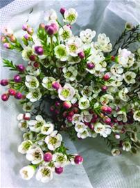 至于鲜切花,山和水鲜花店店员说银柳和澳洲腊梅都是年前受欢迎的品种。银柳学名银芽柳,一个一个的花芽毛绒绒的,被染成各种颜色,可以当插花长久观赏,澳洲腊梅和梅花没有什么关系,它又叫杰拉尔顿蜡花,产自澳洲,花瓣是蜡质的,因此干了也不变形,可以染成多种颜色,放很久。同样耐放的还有转运竹,一把长长的竹子,顶端做成弯曲造型,插一把在花盆里,挂上一串串小灯笼,特别有年味。