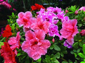 采访中记者发现,不同店里的杜鹃差别很大,有的矮矮小小一盆,有的则高如小树,冠幅如小伞,一棵上开出不同颜色的花朵。李敏说,这是品种不同,矮小的基本都是福建杜鹃,生长速度快,花苞密,不需要嫁接,但因为水土问题,在北方养不太合适,容易养死了。大盆造型的都是嫁接品种,母本是丹东苗,花色则选用本地杜鹃。虽说本地杜鹃长得慢,不适合成株售卖,但它花期长,皮实好养,花色多样,作为嫁接品种最合适。还可以选择不同花色,比如粉瓣红边的红双喜,艳丽的红牡丹和比利时等品种,十分受人喜爱。