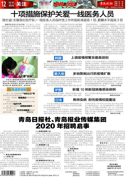 青岛日报社、青岛报业传媒集团2020年招聘启