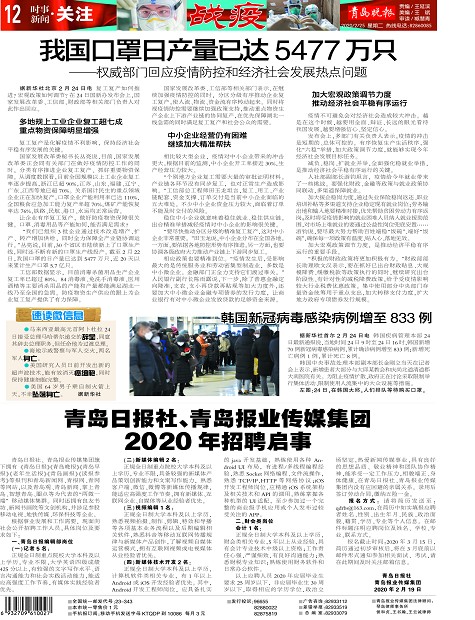 青岛日报社、青岛报业传媒集团2020年招聘启