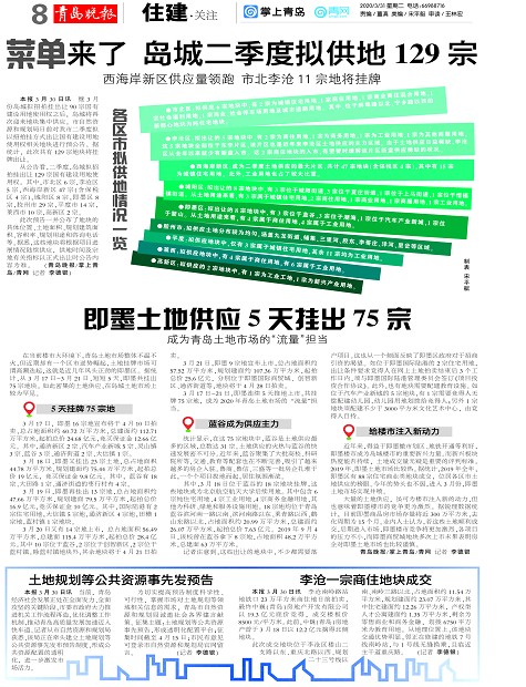 3月17日-21日,即墨连续5天推地上市,共挂牌75宗地,成为2020年青岛土地市场的 “流量”担当。