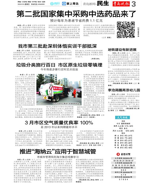第二批国家集中采购中选药品来了我市第三批赴深圳体悟实训干部抵深垃圾分类施行百日 市区原生垃圾零填埋3月市区空气质量优良率100%推进“海纳云”应用于智慧城管地铁建设有新进展李沧商圈再添幼儿园天气预报彩票开奖