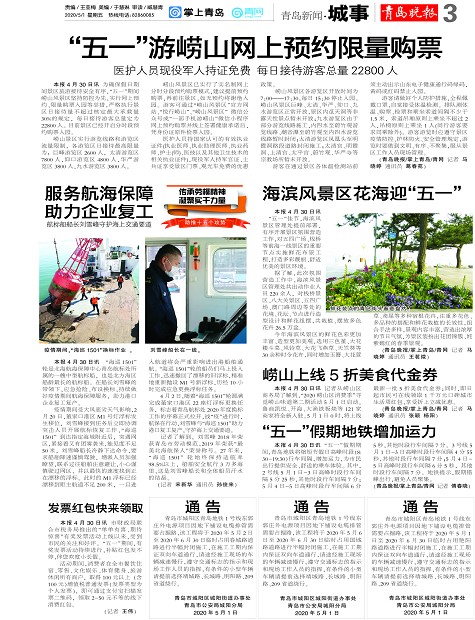 本报4月30日讯 为确保假日期间景区旅游接待安全有序,“五一”期间崂山风景区坚持防控为先,实行网上预约、限量购票入园等举措,严格执行景区日接待量不超过核定最大承载量30%的规定,每日接待游客总量定为22800人。目前景区已经开启分时段预约购票入园。
