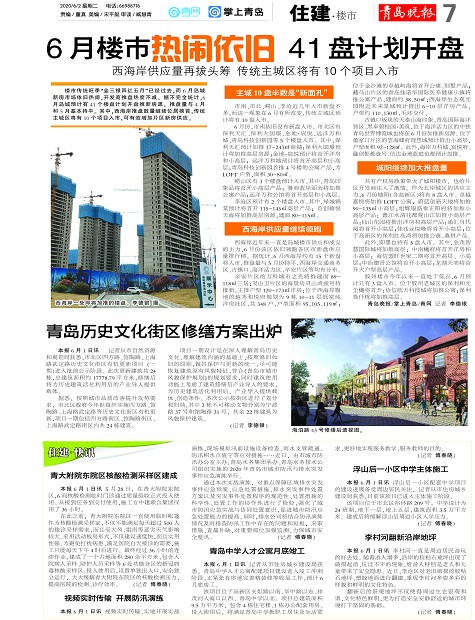 6月楼市热闹依旧41盘计划开盘青岛历史文化街区修缮方案出炉住建·快讯