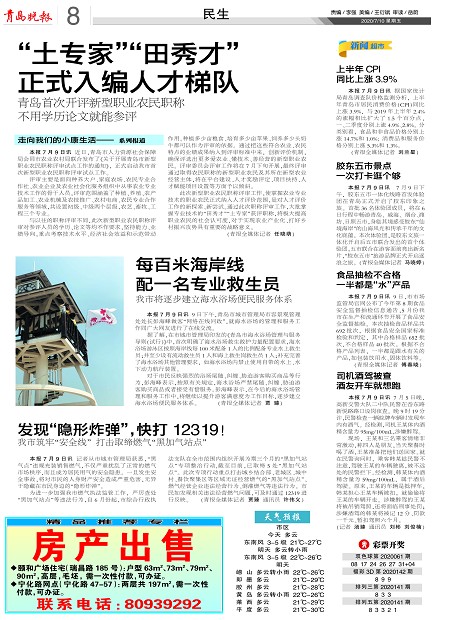 据了解,在市城市管理局印发的《青岛市海水浴场管理与服务导则(试行)》中,首次明确了海水浴场救生救护力量配置要求,海水浴场游泳区按照海岸线每100米配备1人的比例配备专业水上救生员;并至少设有流动救生员1人和海上救生岗救生员1人;补充完善了海水浴场其他管理要求,如海水浴场内禁止使用自带的水上、水下动力航行装置。