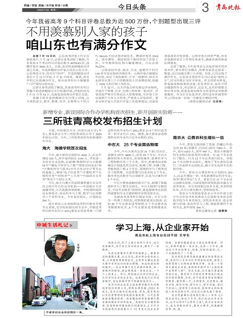 日前,中国海洋大学、中国石油大学(华东)、青岛农业大学三所驻青高校公布了2020年招生计划。今年,三所驻青高校均有新增招生专业。