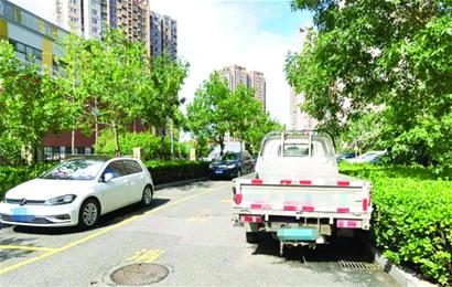 记者在小区探访时注意到,小区很多地方都立着“车辆已定位、请对号泊车”的牌子,但很多车主似乎视而不见,卡住消防通道的情况更是随处可见:在西门入口处,一辆面包车和一辆轻卡就停在入口挡车杆前20多米远的位置。