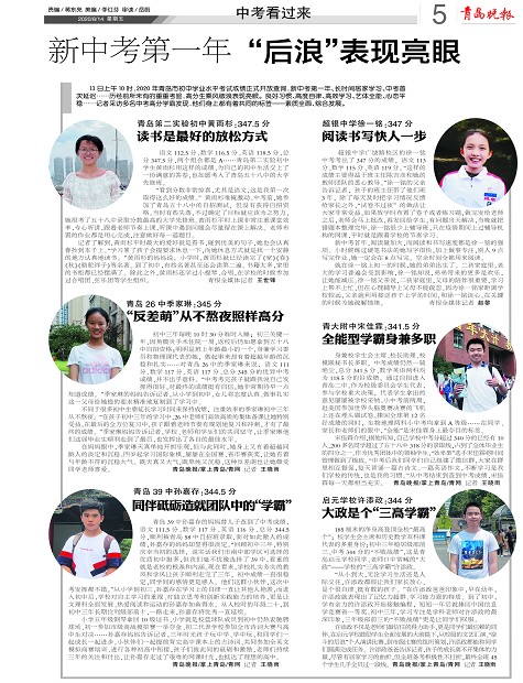 13日上午10时,2020年青岛市初中学业水平考试成绩正式开放查询,新中考第一年、长时间居家学习、中考首次延迟……历经前所未有的重重考验,高分生乘风破浪表现亮眼。良好习惯、高度自律、高效学习、艺体全能、心态平稳……记者采访多名中考高分学霸发现,他们身上都有着共同的标签——素质全面、综合发展。