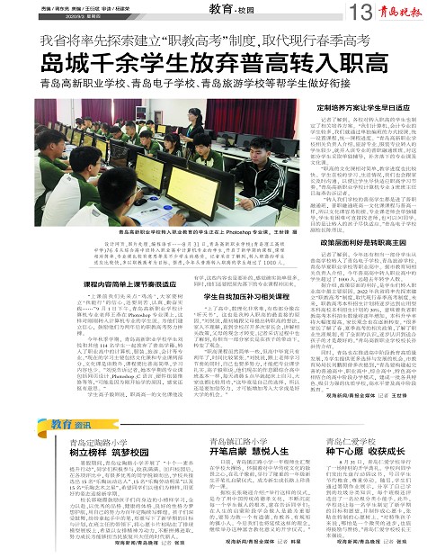 设计网页、图片处理、编程语言……8月31日,青岛高新职业学校(青岛理工高级中学)76名从综合高中班转入职业高中计算机专业的学生,开启了新学期的课程,课程相对简单、专业课比较有意思等是不少学生的感受。记者采访了解到,转入职高的学生适应比较快,多以职教高考为目标。据悉,今年从普高转入职高的学生超过了1000人。