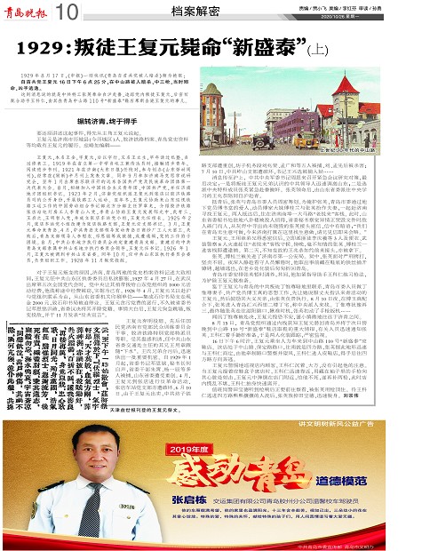 这则消息说的就是中共特工张英奉命自沪赴鲁,追踪党内叛徒王复元,后密切配合助手王科仁,由其在青岛中山路110号“新盛泰”鞋店果断击毙王复元的事儿。