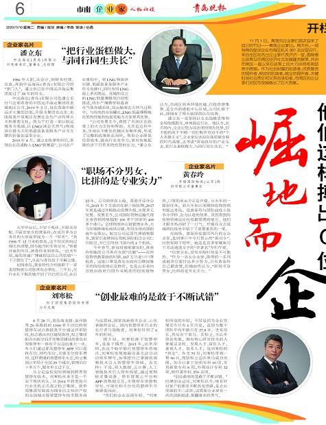 每一位企业家的创业历程都如同一部自我成长、自我蝶变甚至自我断腕的奋斗史诗。作为企业的掌舵人,面对商海的波澜壮阔,他们必须一直乘风破浪,勇立潮头,也不得不一次次绝地求生、力挽狂澜。本期人物访谈,让我们走近市南区六位杰出企业家,听他们讲述怎样在创新锐进中破题起势,搏出企业和自己的C位。开栏语