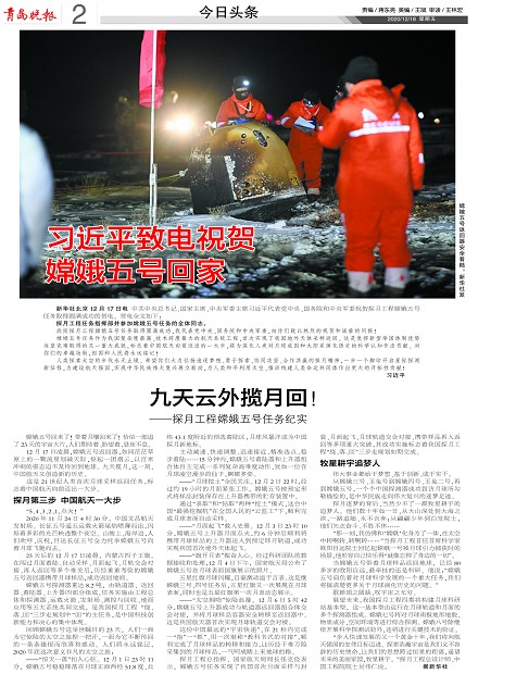 习近平致电祝贺嫦娥五号回家