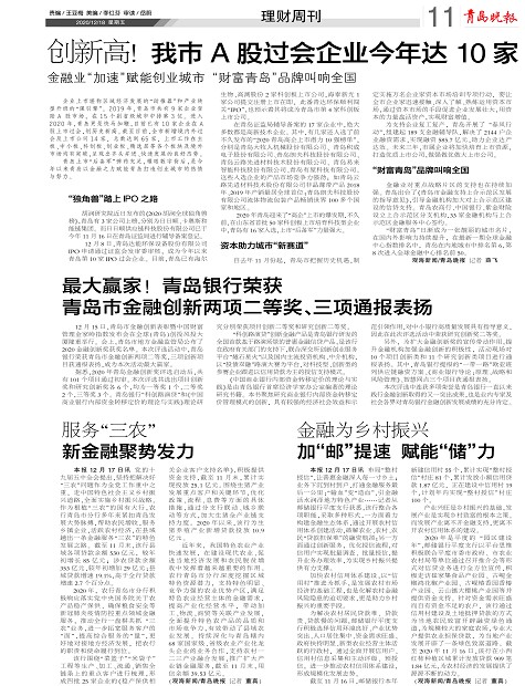 最大赢家!青岛银行荣获青岛市金融创新两项二等