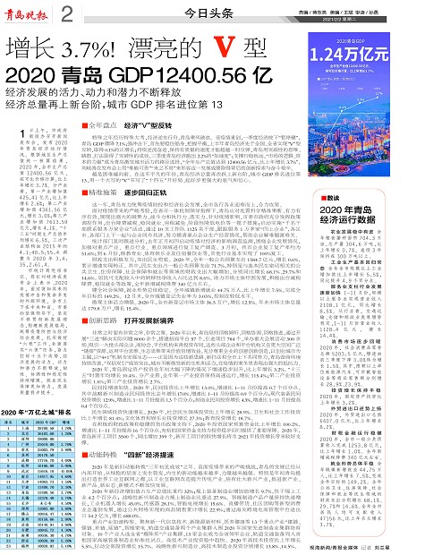 2020青岛GDP12400.56亿