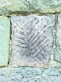 关于其他海生物,物型不够明确,有的似贝壳,有的似海螺,不能完全断定。但树叶纹饰可以做出清晰的判断。墙体大部分图纹是树叶纹,树叶纹在普通石匠的手艺中最容易获得施展,是凿平石料的基本工艺,但在凿石过程中依然需要基本的形象把握与叶型的专门刻画,包括不同的朝向与组合,这种变化的掌控甚至高于具象的摹写。在海洋文化背景下,树叶纹也就不可以单纯的理解为陆地植物,应该是海陆植物的综合,以海草海菜为生活必需品的沿海渔民对于海洋植物是十分熟悉的,它们都具有叶纹的特征,因此,这些树叶纹饰同样是陆地植物与海洋植物的结合体。