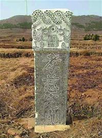 “孝慈完贞”碑为其一。矗立荒地上,四周荒草蔓生,探访之时,正值霜降,秋风瑟瑟,古碑独立,给人一种别样的触动。据说,该碑原址在祠堂的旁侧,后来移于村外野地。