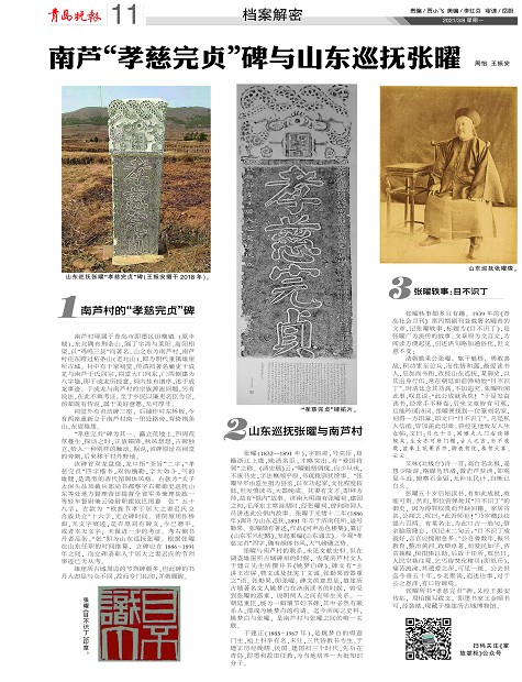 南芦“孝慈完贞”碑与山东巡抚张曜