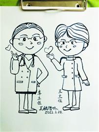 女神节这天是吴麟回到市中心医院复查的日子,他将提前画好的漫画像送给了血液内科的医护人员。王玲主任、李颖副主任、移植仓的护士们都成为了漫画中的主角,嘴角有笑意、眼神有温暖。不管是模样还是神态,都像极了本人。正因为有十个月的陪伴,才有了这般栩栩如生的漫画。这是属于血液内科医护人员与“移植一哥”之间的默契,是医患之间的情谊,也是血液内科白衣女神们收到的最好女神节礼物。