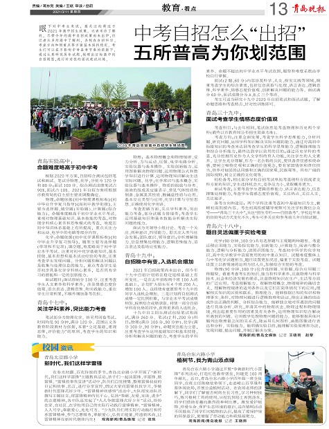 眼下对中考生来说,最关注的莫过于2021年高中招生政策。记者采访了解到,尽管今年的高中自招政策尚未出炉,但记者从多所高中了解到,各校在自招科目、考查方向和侧重点等方面基本保持稳定。考生们可以在不影响中考备考节奏的前提下,通过认真研究历年试题,梳理出目标高中的自招题型,进行针对性的面试笔试训练。