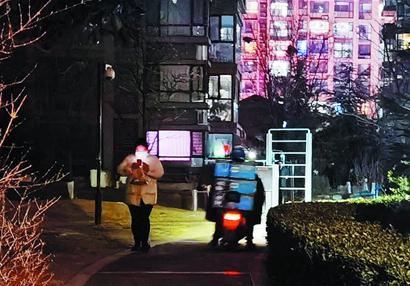 记者夜间在该小区探访时,也遇到过外卖骑手骑着电动车快速从身边驶过。