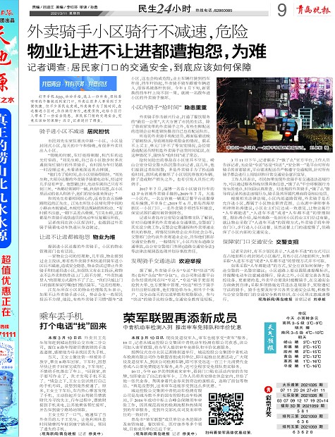 如果采取“人车都能进”的方式,安全应该如何保障?李沧交警的一名警官建议:小区道路上要设置限速提醒标识,并提醒电动车注意减速慢行。除此之外,小区要完善各类监控设备。更重要的是,外卖平台要及时提醒骑手,在交通安全方面做到自律;采取多项措施处罚违法违规骑手,奖励遵纪守法的骑手。骑手也要及时学习各类交通安全法规,积极参与公安交警部门的交通安全教育培训,在小区里注意减速慢行。 观海新闻/青岛晚报 首席记者 刘卓毅