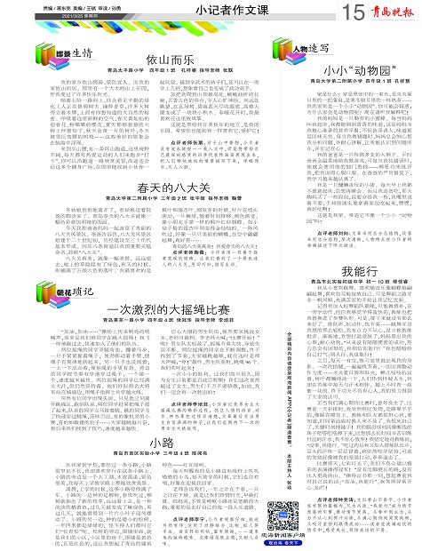 点评老师李宁:小作者观察仔细,叙述井然有序,运用了动静结合、比喻、拟人等手法。语言轻松明快,富有情趣,一一道来他的独特感受。文章结尾既点题,又耐人寻味。