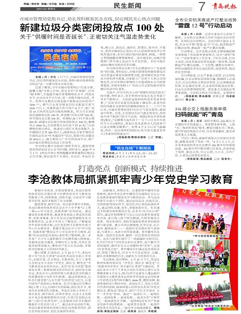 李沧教体局抓紧抓牢青少年党史学习教育
