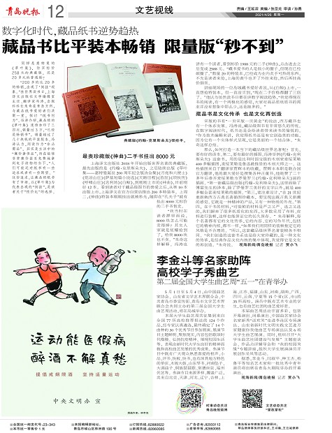 讲座现场的一位岛城藏书爱好者说,从《白鲸》上市,一直想抢特装本,但一直没买到,“现在二手价格都翻了三倍了。 ”他认为虽然读书日都在讲数字阅读趋势,“我觉得现在书的阅读,有一个两极化的感觉,大家对高品质纸质书的需求并没有想象中那么少,还是挺多的。 ”