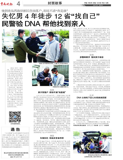失忆男4年徒步12省“找自己”民警验DNA帮