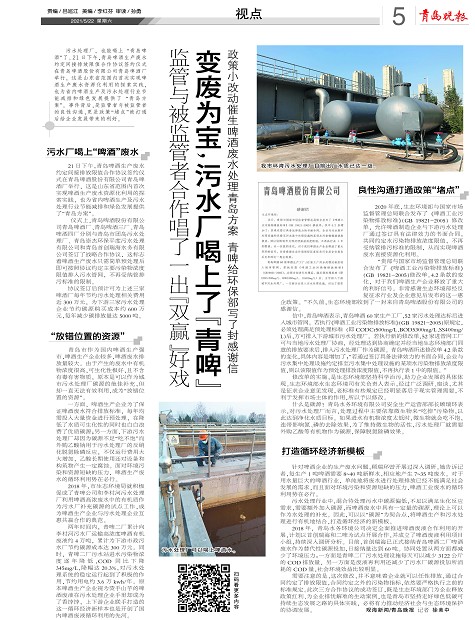 变废为宝,污水厂喝上了“青啤”