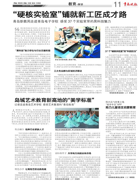 5G 移动通信体验实训室里,沉浸式体验5G时代的风驰电掣;智能家居实训室里,借助手机端的APP,就能轻松遥控家里的所有设备;人工智能实验室,只需要一个程序就能实现与机器人对弈、垃圾分类、寻迹移动等功能……26日上午,作为今年青岛市职业教育活动周首站,记者走进青岛电子学校多个“硬核实验室”,零距离感受岛城中职教育第一校的“黑科技”实力,揭秘逐年攀升的升学率和100%就业率背后的“科技担当”。