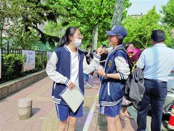 本报6月7日讯 “加油啊!”7日上午,青岛华夏职校考点外的送考队伍里,身着青岛九中校服的牛清华格外显眼,同样是高三学生,她却一直站在警戒线外的送考区域内,与班主任陈运强一起,为每名入场的高三1班同学加油助威。“我已经被中国海洋大学单招录取了,不需要再参加高考,但看着同学们高考还挺激动挺羡慕的。 ”牛清华告诉记者,凭借帆船特长,她在6月1日正式接到了海大的录取通知,顺利考入海大体育学院运动训练专业。 (观海新闻/青岛晚报 记者 王晓雨 于娜)