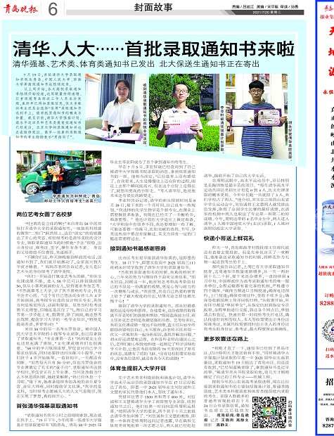先于艺术类本科提前批和强基计划,清华大学高水平运动员的录取通知书早在17日已经抵达了青岛。即墨一中2021届毕业生刘信诚和王文慧的家长代替他们本人,签收了通知书。