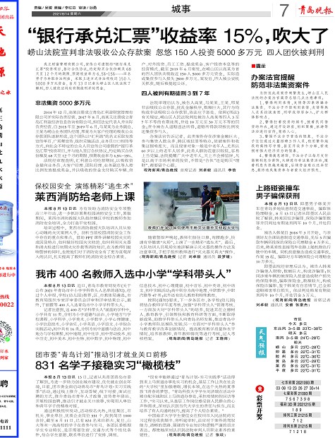 本报8月13日讯 近日,青岛市教育局发布《关于公布2021年青岛市中小学学科带头人名单的通知》。经过个人申报,学校(幼儿园)推荐,区、市教体局遴选,市教育局组织专家评审委员会评审和评审结果公示,最终,于丽霞等400人入选青岛市中小学学科带头人。