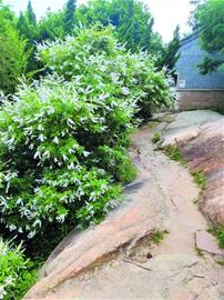 沿着鹤山入口拾级而上,过 “聚仙门”,经“水鸣天梯”,到达遇真庵最高的神殿,其旁侧就有巨石林立,留有元明两代的摩崖石刻。有的石刻落款完整,一目了然。有的无款或半款,有待考证。