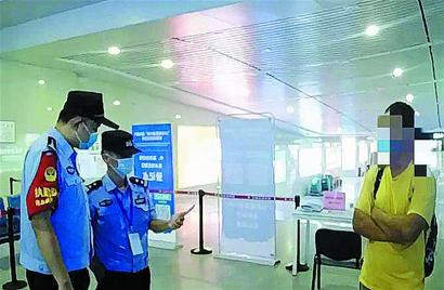 8月18日上午,市南公安分局八大关派出所民警、辅警在火车站执行疫情防控勤务时,发现一名男子神色慌张快步走出站口。为确保疫情防控工作落实到位,辅警高俊杰、宋文俊迅速上前询问,让其出示健康码,男子称手机没电无法出示。民警让男子出示身份证件,男子又称身份证丢失。
