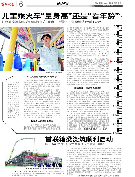 公共交通免票线没“长个”,景区却率先行动了。 2018年,国有景区对延续多年的1.2米儿童身高免票标准提高到1.4米,并增加了免票的年龄标准。在此之前,我市景区针对儿童的免票标准多种多样,有的仅对儿童身高要求,有的除儿童身高外还有年龄要求,而身高标准也各不相同,有1.2米的标准,也有1.4米的标准。2017年市“两会”期间,来自地铁集团的市人大代表刘畅就对地铁交通的儿童免票标准提出建议:希望把青岛地铁儿童优惠身高从1.2米提升到1.3米,让更多人享受到地铁出行的便利。根据调研,2014年北京地铁儿童免票高度从1.2米提至1.3米;上海地铁更是先行一步,自2011年3月起,儿童免票身高标准调整至1.3米。