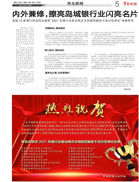内外兼修,擦亮岛城银行业闪亮名片